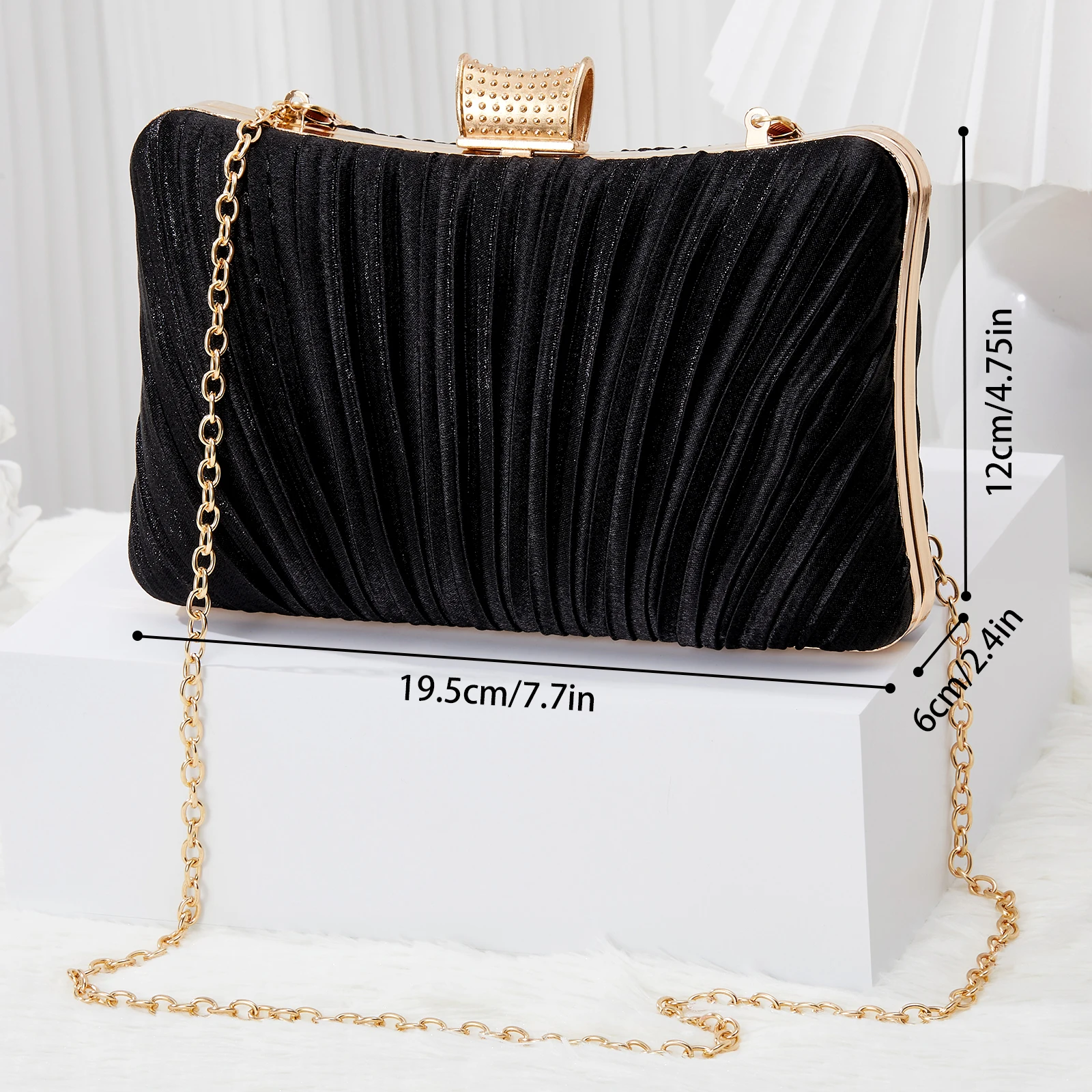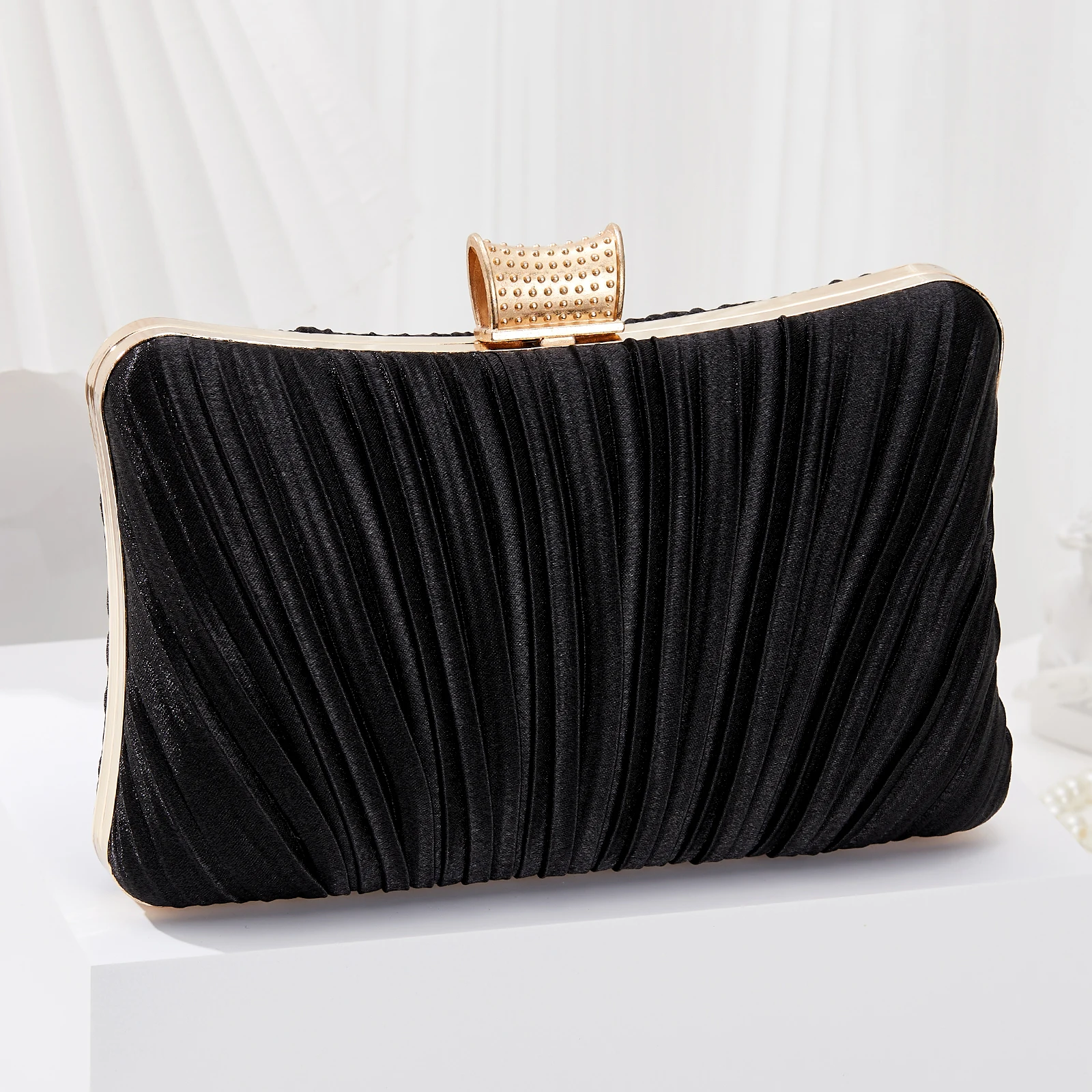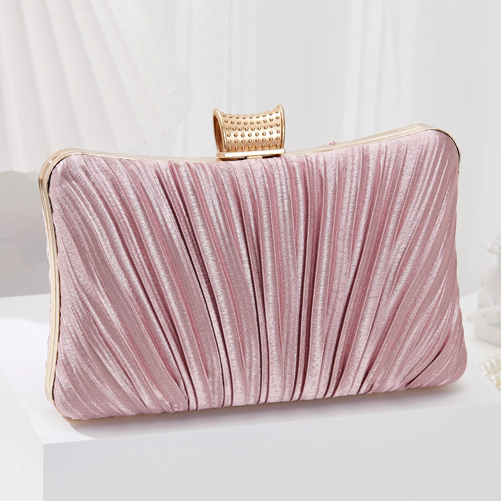 Pleated Evening Clutch Bag with Rhinestone Buckle
