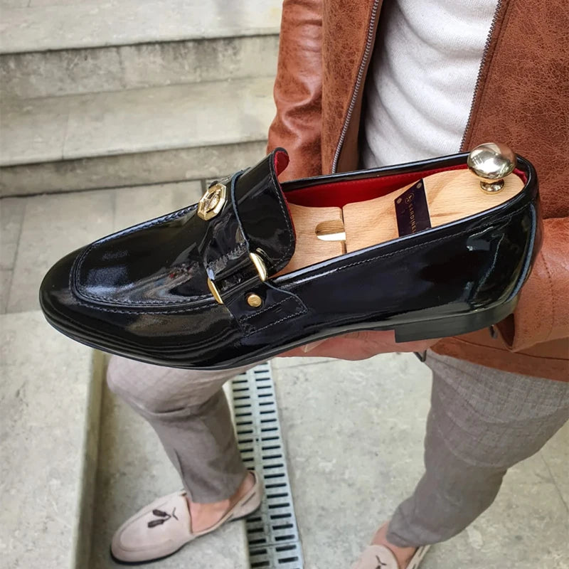 Shiny Black Buckled Leather Shoe