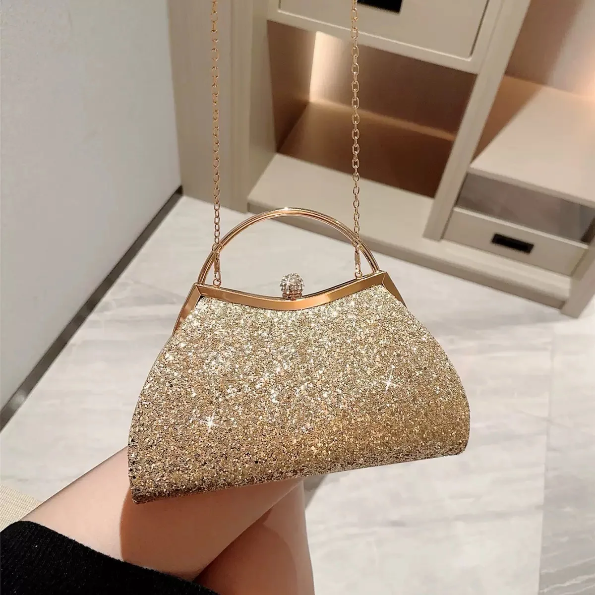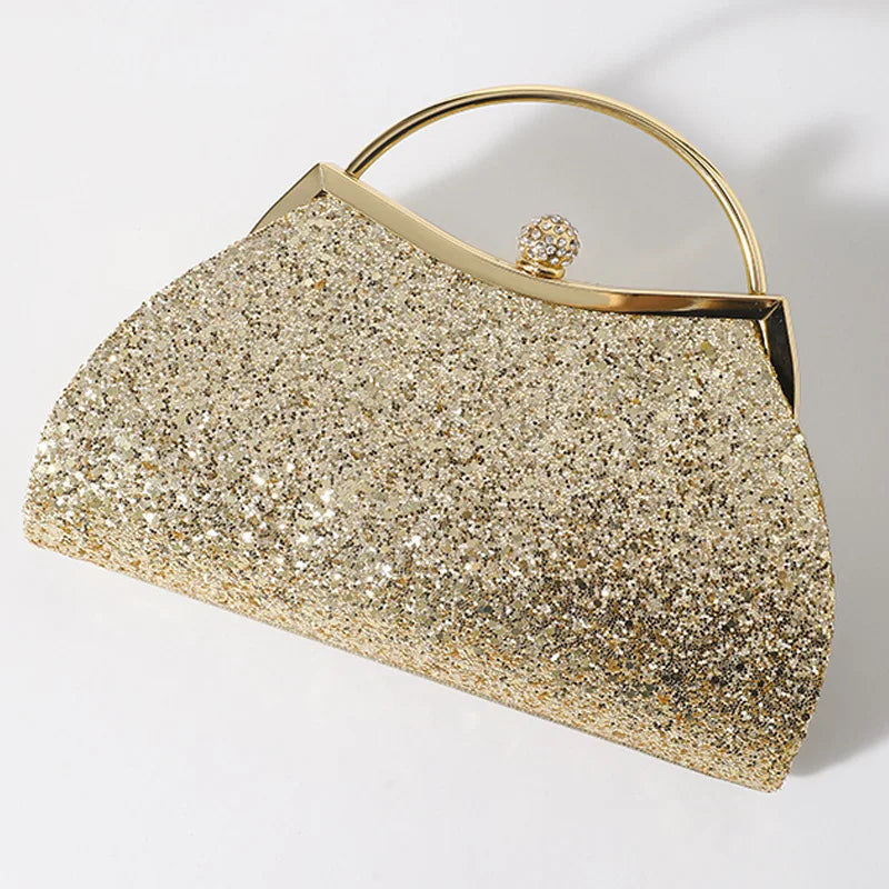 Sparkly Glitter Evening Clutch Bag with Diamond Buckle